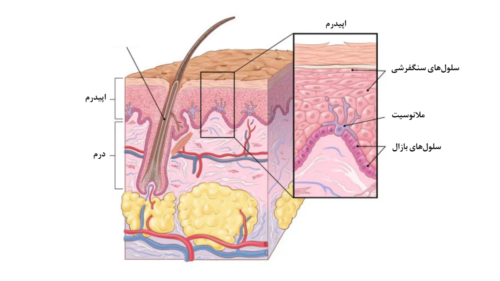ملانوسیتها: این سلولها رنگدانه قهوهای به نام ملانین میسازند که به پوست رنگ قهوهای می دهد. ملانین از لایههای عمیقتر پوست در برابر برخی از اثرات مضر نور خورشید محافظت می کند.
